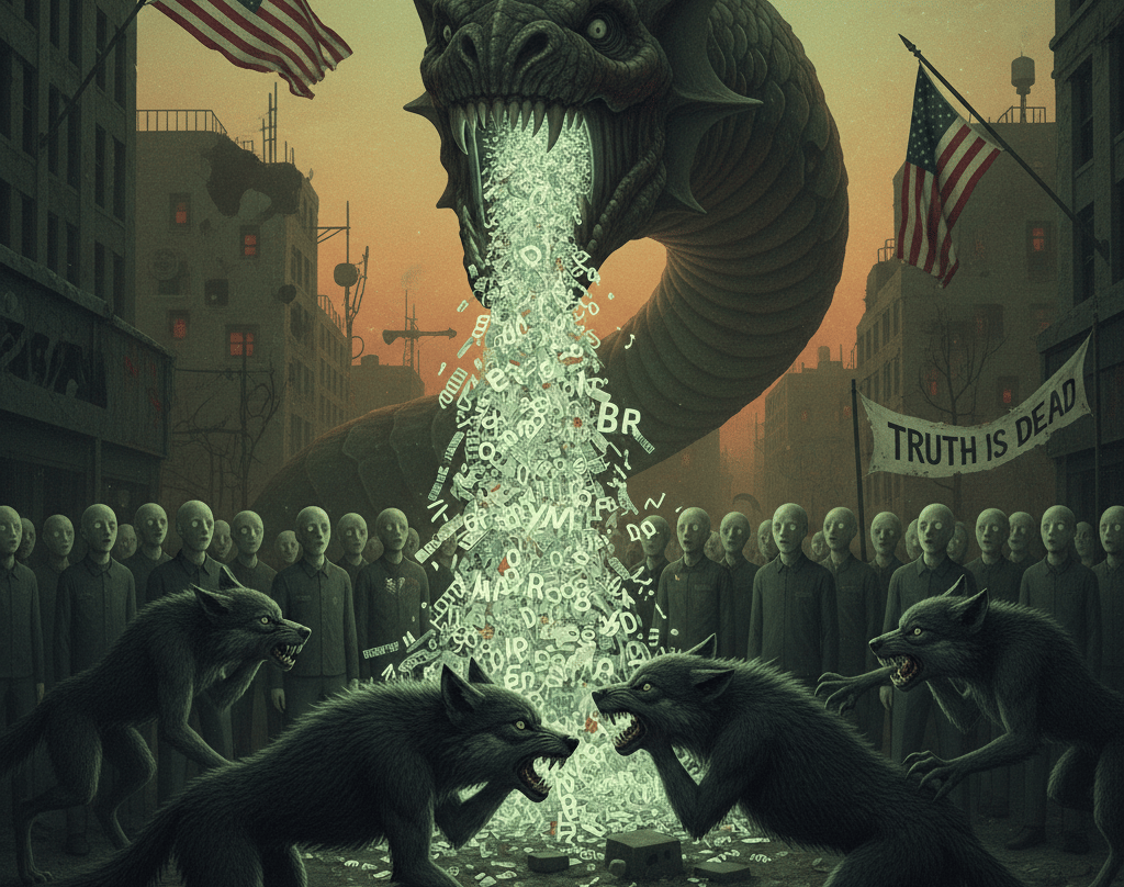 On January 4th, 2026 while praying, I suddenly had a vision come into my head where I saw a 7 headed beast standing on the east coast of America and roaring. Every time it roared, words and dark matter was spewing out of it's mouth. It was aggressive and angry as people in black hoods and lifeless faces stared up at the beast in amazement every once in a while. Many walked around like they were drunk and appeared to be unaware of what was going on. At random times I would see some dark figures suddenly look at the beast and it's words and the dark matter then turned into what appeared to be a savage dog, however upon observing them more, they were ravenous wolves that appeared to be frothing at the mouth with rabies and incredibly vicious and angry like the beast. Each one lurking around anxiously and swiftly with immense vile hatred. Every dark figure roaming around were empty, angry, lost. Not a single one had a leader, although they consumed what this beast fed them through the air across the lands of America.